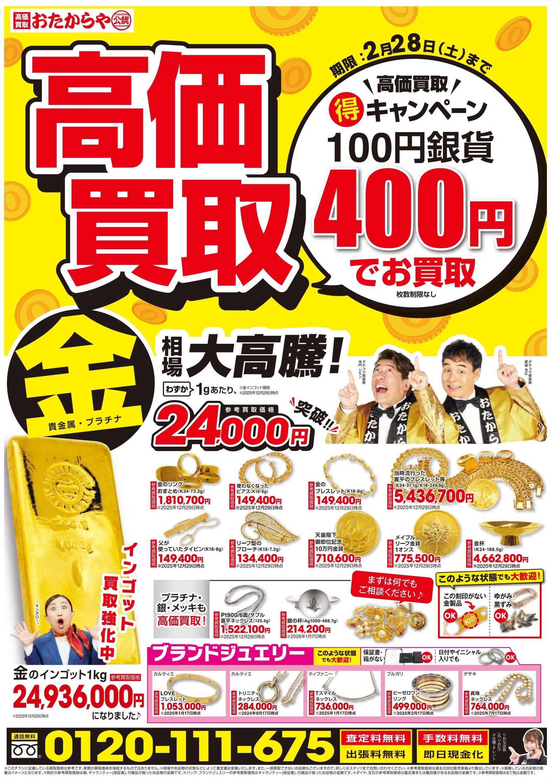 査定はすべて無料です。お気軽に何点でもお持ち込みください。